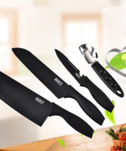 Bộ dao 5 món gồm: 3 dao với kích thước khác nhau, 1 khuôn trứng hình trái tim và 1 dụng cụ khui bia, nước ngọt. Sự đa dạng của bộ dao giúp bạn chế biến món ăn thật thoải mái từ thịt nạc, xương, rau củ đều được thái đẹp mắt hơn.