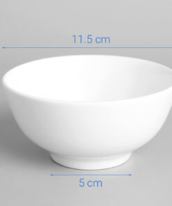 - Chén sứ cao cấp đường kính 11.5 cm, cao 5.4 cm vừa vặn tay cầm người lớn.